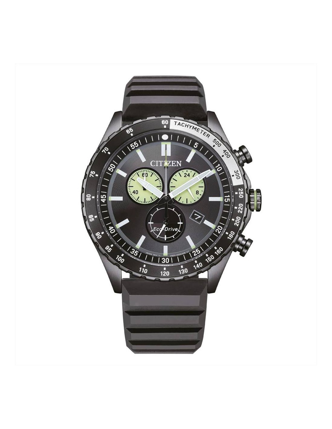 Orologio Citizen Marine Crono, cronografo uomo. Cassa in acciaio con trattamento GIP color grigio, con fondo serrato a vite da 43 mm, quadrante blu con indici e lancette luminescenti, datario a ore 4. Lunetta con inserto in alluminio colore nero. Vetro minerale e movimento eco drive a carica luce con riserva di carica di 180 giorni. Cinturino in caucciù nero e impermeabilità di 10 atm.