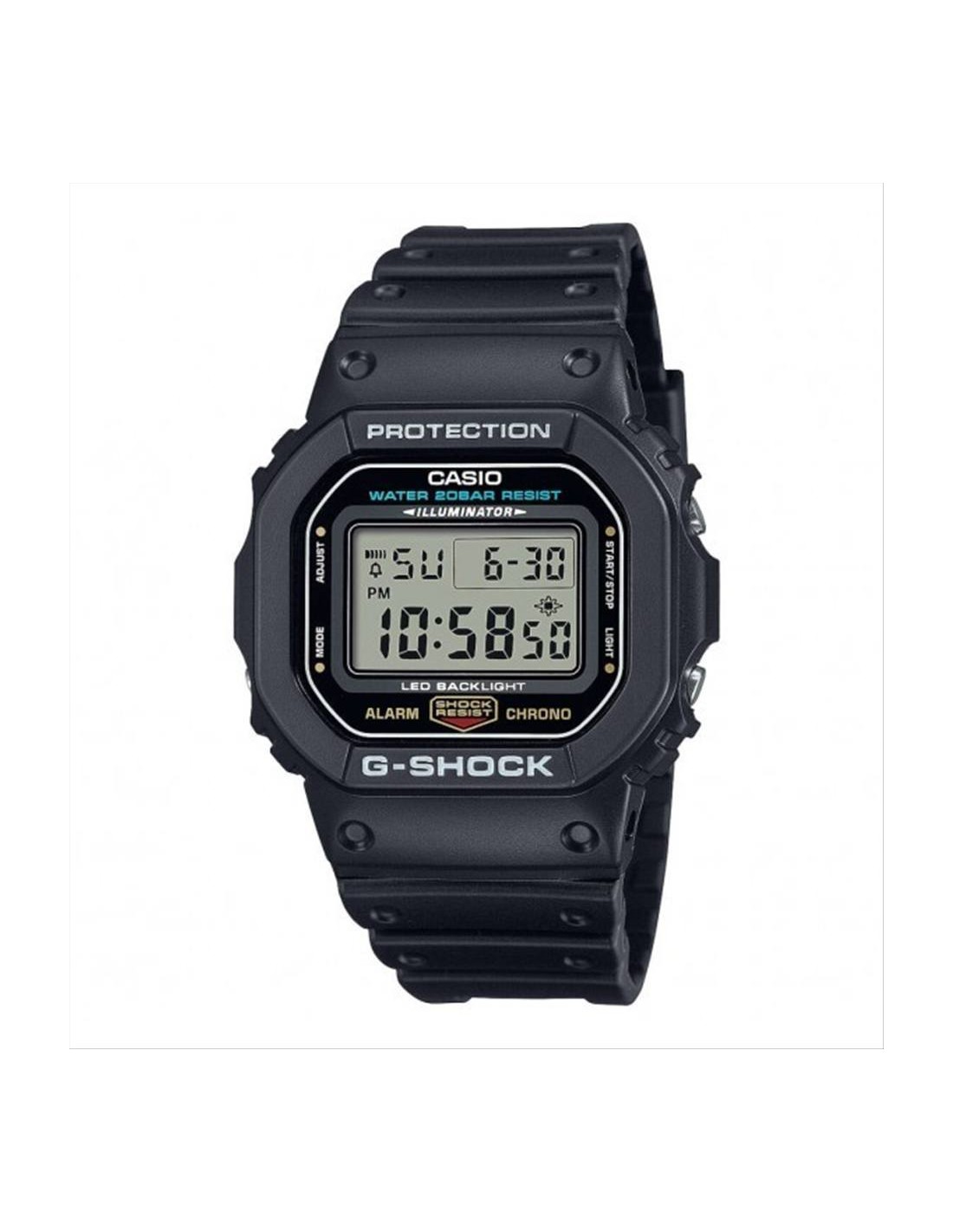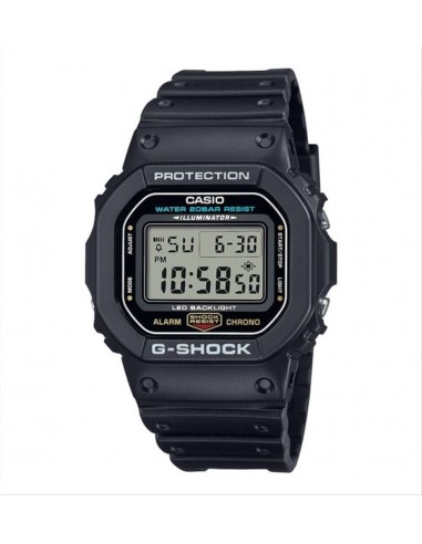 Orologio Casio G-Shock, digitale. Cassa antiurto realizzata in resina nera dalle dimensioni di 48,9 mm x 42,8. Fondello in acciaio inox. Quadrante digitale protetto da un robusto vetro minerale antigraffio. Sul display è possibile visualizzare l'orario in formato 12 o 24 ore, il datario automatico, la sveglia e le funzioni attive. Retroilluminazione del quadrante tramite tasto laterale. Cinturino in resina color nero. Funzioni di cronometro con accuratezza di 1 centesimo di secondo, timer per il conto alla rovescia e possibilità di inserire una sveglia giornaliera. Resistente all'acqua fino a 200 metri di profondità.