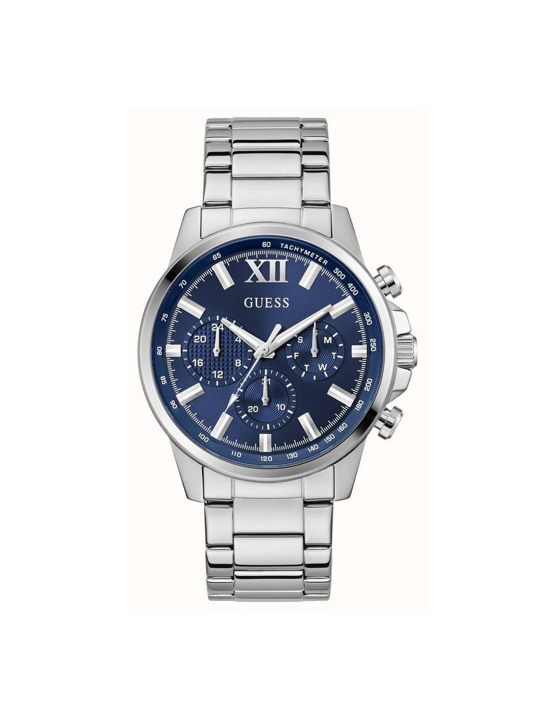 Orologio Guess Walker, multifunzione uomo. Cassa in acciaio silver da 46 mm. Quadrante blu con indici e lancette luminescenti e tachimetro interno. Movimento al quarzo e vetro minerale. Cinturino in acciaio silver. Impermeabilità di 3 atm.