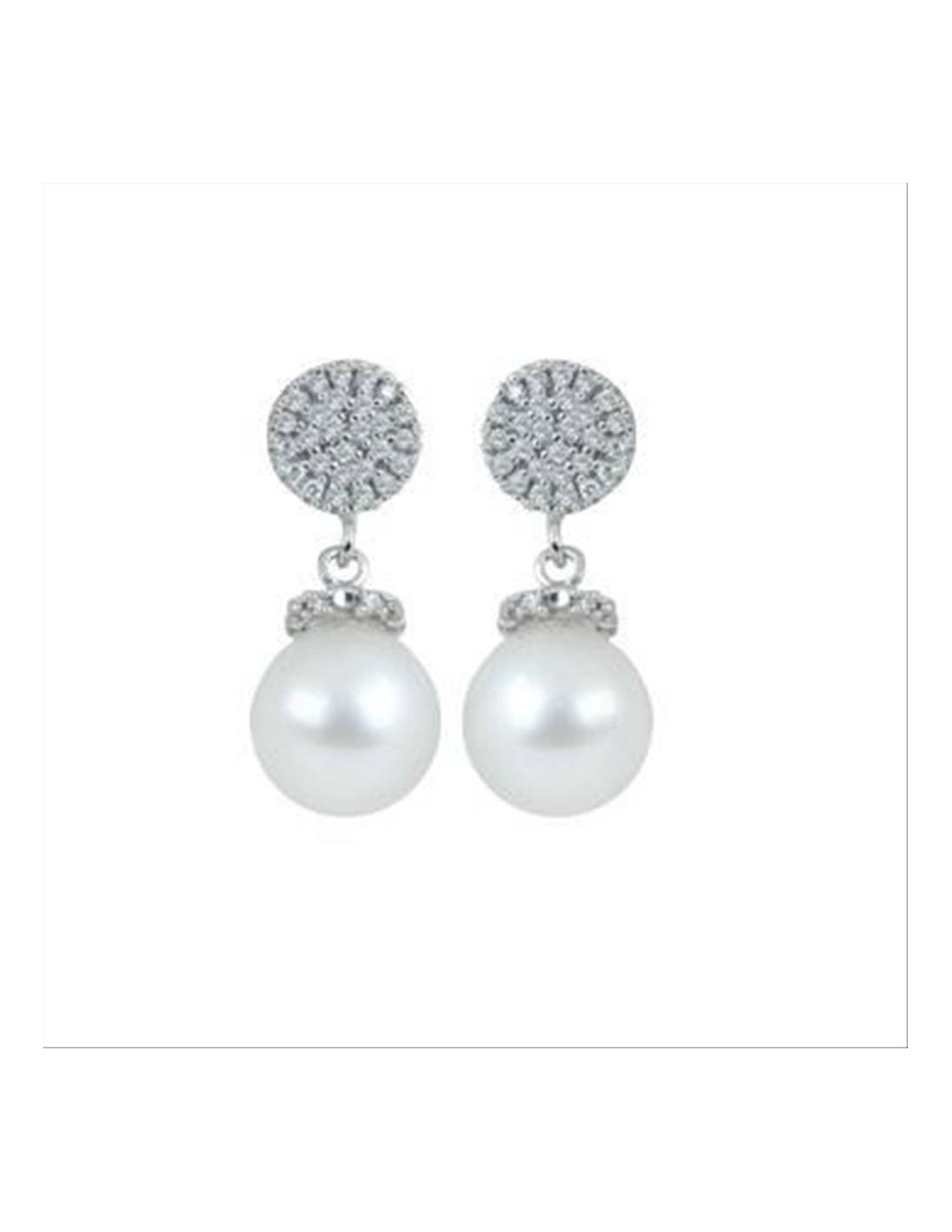 Orecchini Artlinea, in oro bianco 18KT con cerchio pavè di diamanti e perla di mare. nr.66 diamanti bianchi ct. 0,14 ,col.G ,pur.VS ,nr. 2 perla di mare akoya ,peso oro gr.2,40