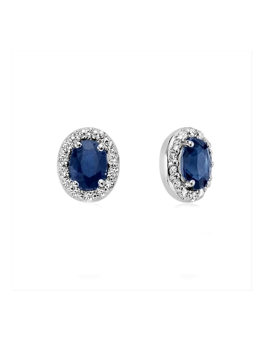 Orecchini Miluna Gemme Preziose, in oro 750/1000 ,nr.28 diamanti naturali pt.tot 8,4 ,col.G ,pur.SI ,taglio Brillante Rotondo, nr.2 zaffiri naturali col. Blu ovale mm 4x3 Ct 0,46