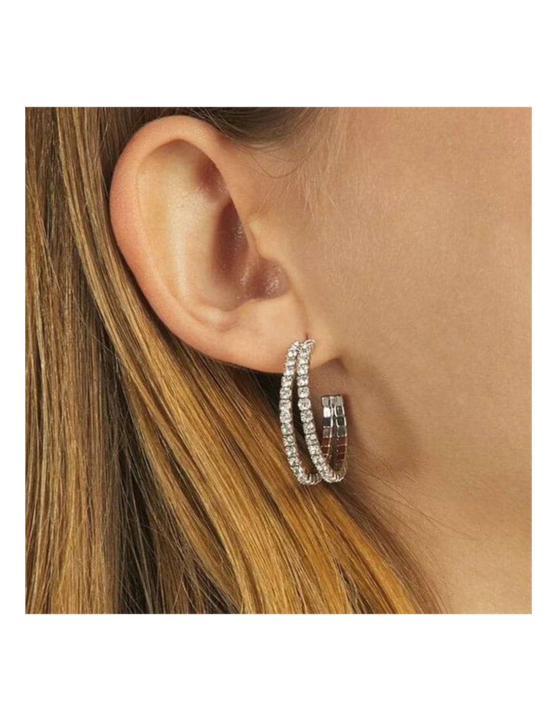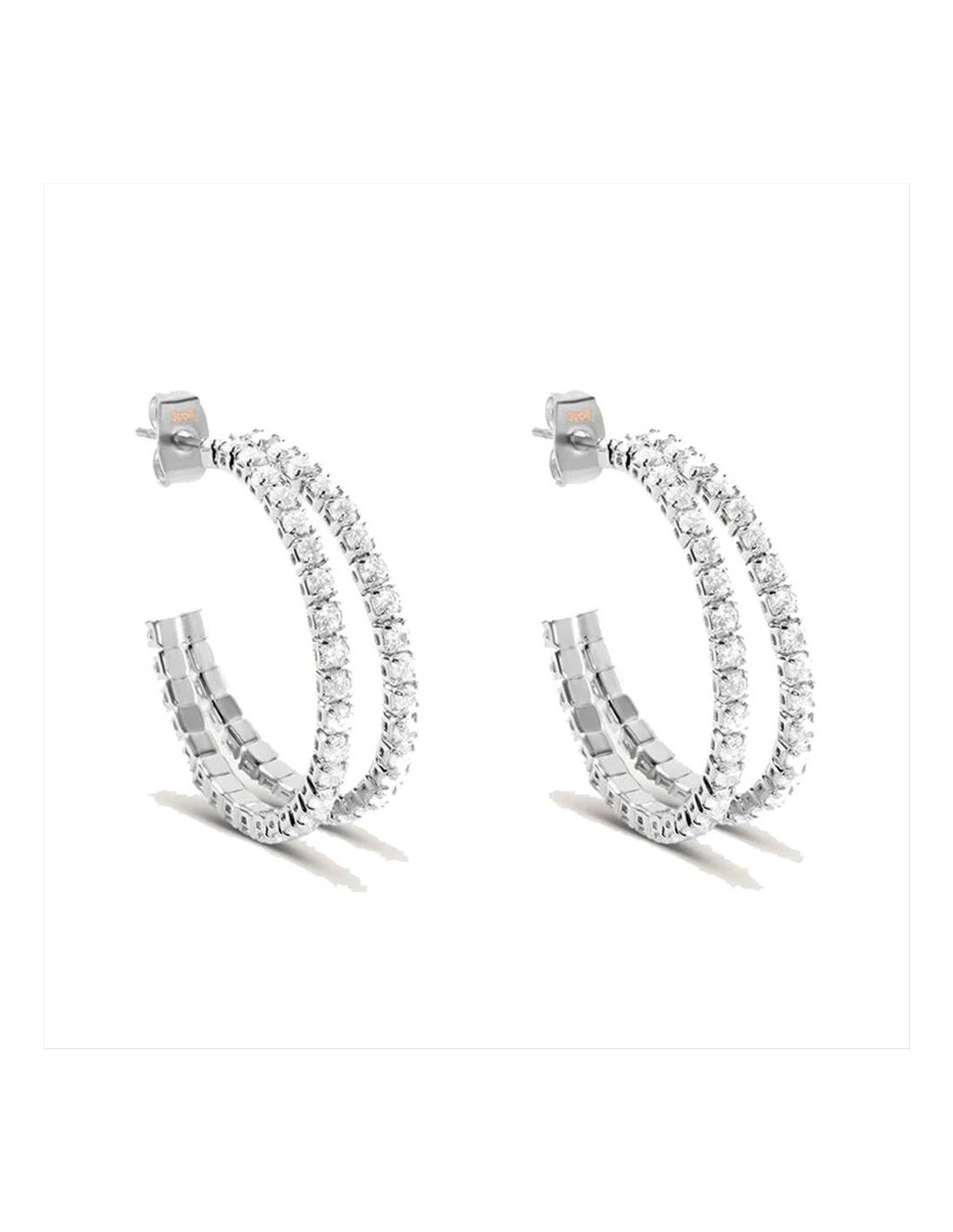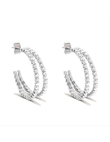 Orecchini Stroili Romantic Shine, a forma di cerchio 25 mm in metallo di colore silver con cristalli di colore bianco.