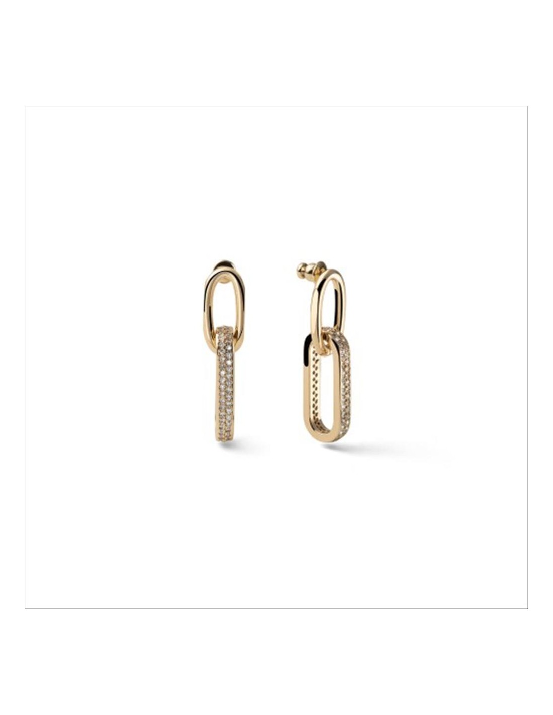 Orecchini Unoaerre, pendenti catena dorata, pavé di zirconi. Lunghezza 3,50 cm.