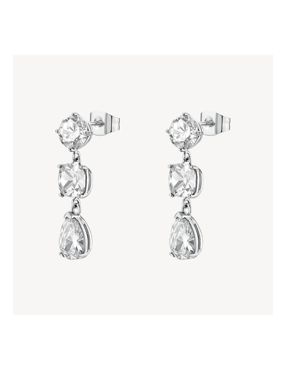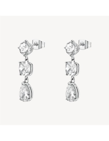 Orecchini Brosway Dreaming, pendenti in acciaio 316L con cubic zirconia round, cushion e pear.