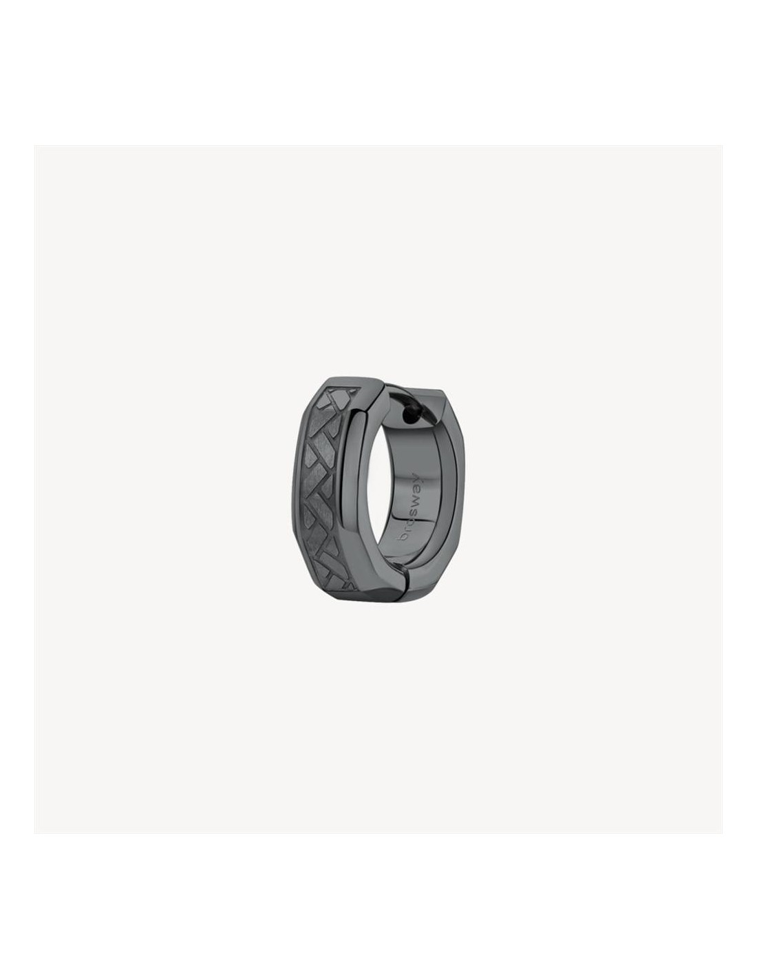 Mono Orecchino Brosway Logan, singolo a cerchio in acciaio 316L e finitura pvd colore rutenio.