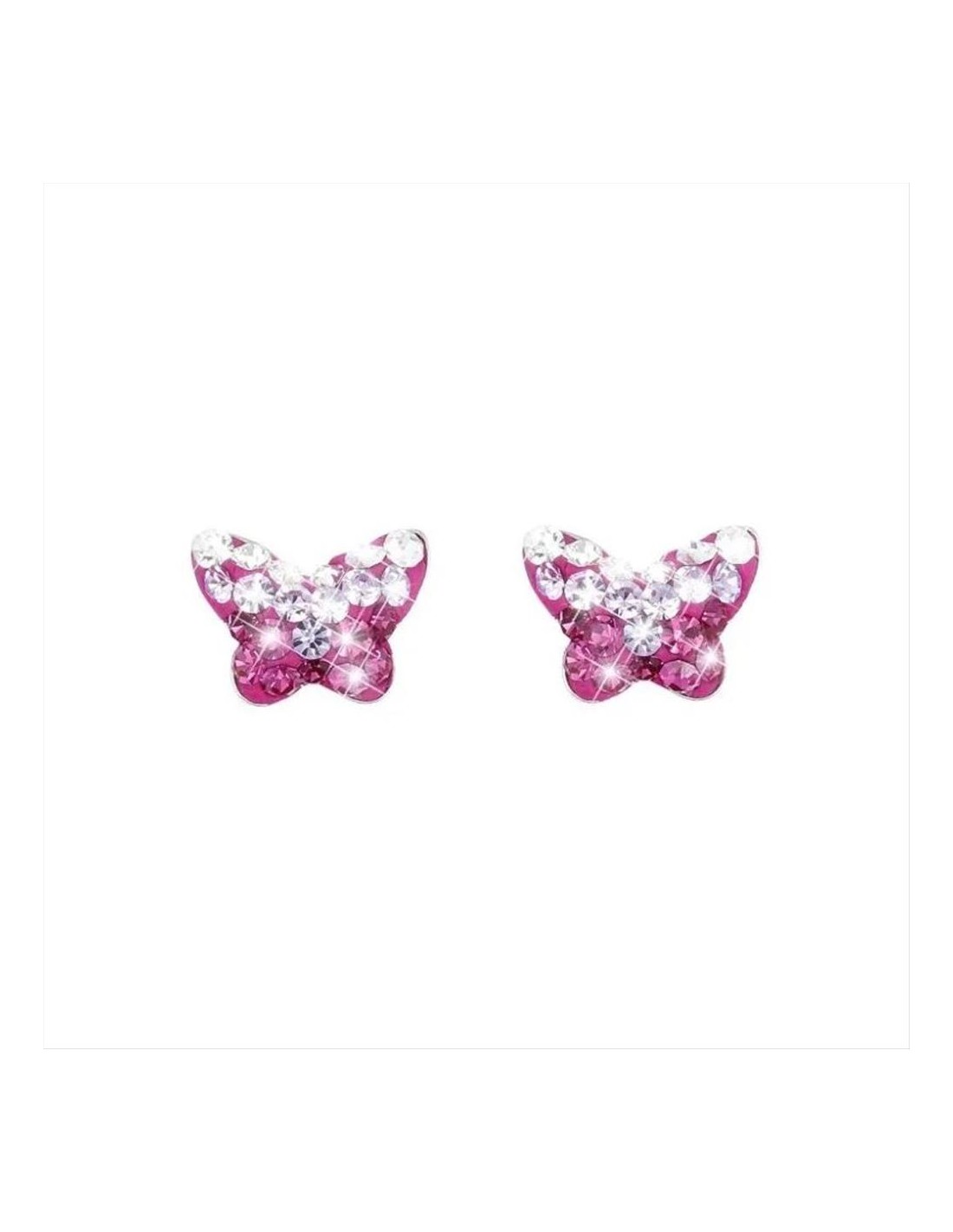 Orecchini Stroili, a lobo in argento 925 colore silver a forma di farfalla con cristalli colore bianco/fucsia.