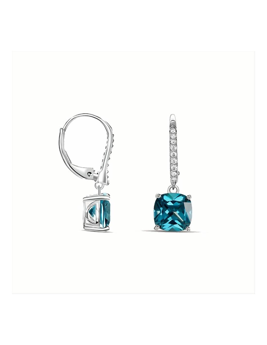 Orecchini Stroili Silver Rainbow, pendenti a monachella, in argento rodiato 925/1000 con zircone color petrolio e zirconi bianchi.