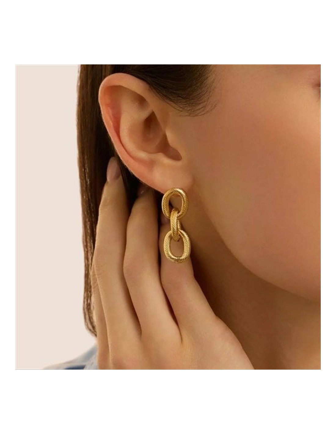 Orecchini Stroili Radiance, pendenti, in acciaio dorato con tre maglie ovali pendenti. Lunghezza 3,2 cm