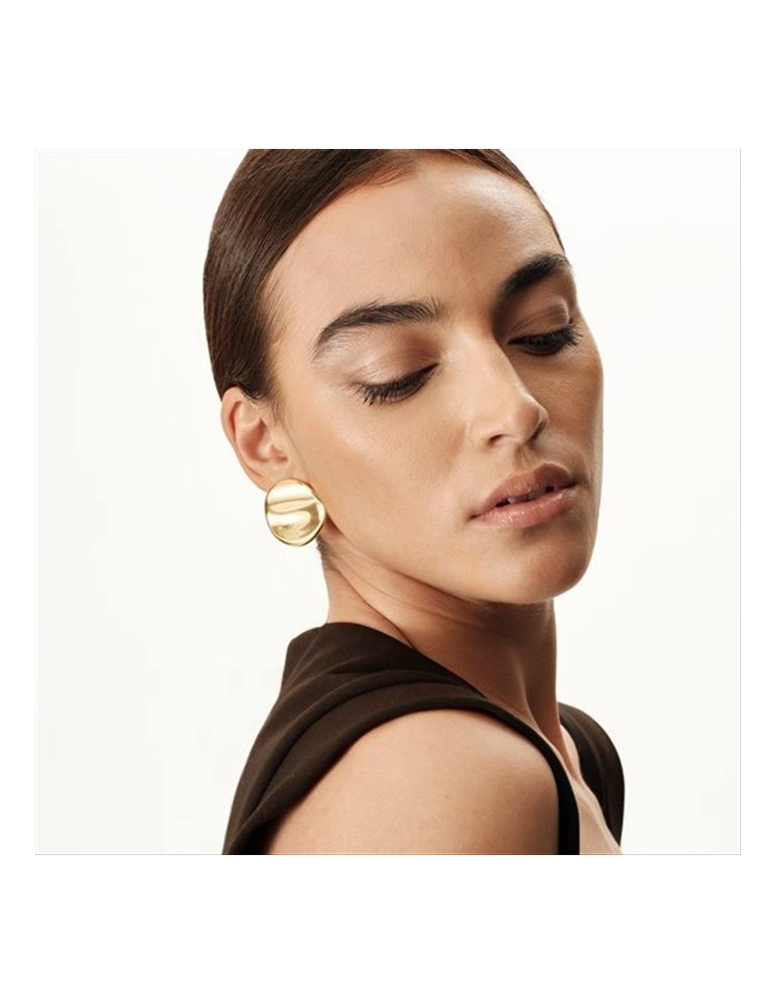 Orecchini Breil Globe, a lobo, in acciaio lucido dorato, si distinguono per la loro silhouette tonda e la superficie concava e convessa. Lunghezza massima 3,2 cm.