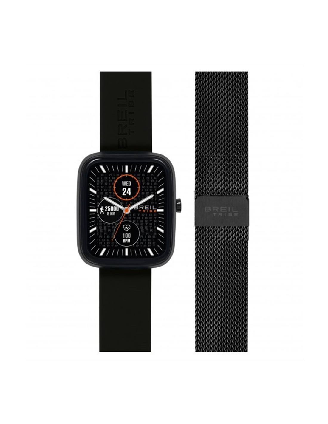 Orologio Breil Smartwatch SBT-3. Compatibile con IOS e Android. Connettività Bluetooth BT 5. Cassa rettangolare in ABS di dimensioni 37,8 x 44,5 mm. Display 1,83 pollici. Vetro acrilico. Viene infatti venduto con due diversi cinturini, uno in morbido silicone e uno in acciaio con maglia mesh, facilmente intercambiabili. L'App BREIL SMARTWATCH è compatibile con iOS e Android. Oltre a monitorare 15 sport (tra cui: corsa, ciclismo, scalata, yoga, tennis, fitness...) ha innumerevoli altre funzioni: chiamata bluetooth, notifica di chiamata e di messaggi, controllo scatto foto, meteo, pedometro, anti smarrimento, controllo musica, calorie, frequenza cardiaca, relax, monitoraggio ossigeno nel sangue, ciclo mestruale, monitoraggio del sonno. Lo smartwatch è dotato di una certificazione IP68: il dispositivo risulta completamente protetto dalla polvere ed è in grado di resistere a pioggia, spruzzi.