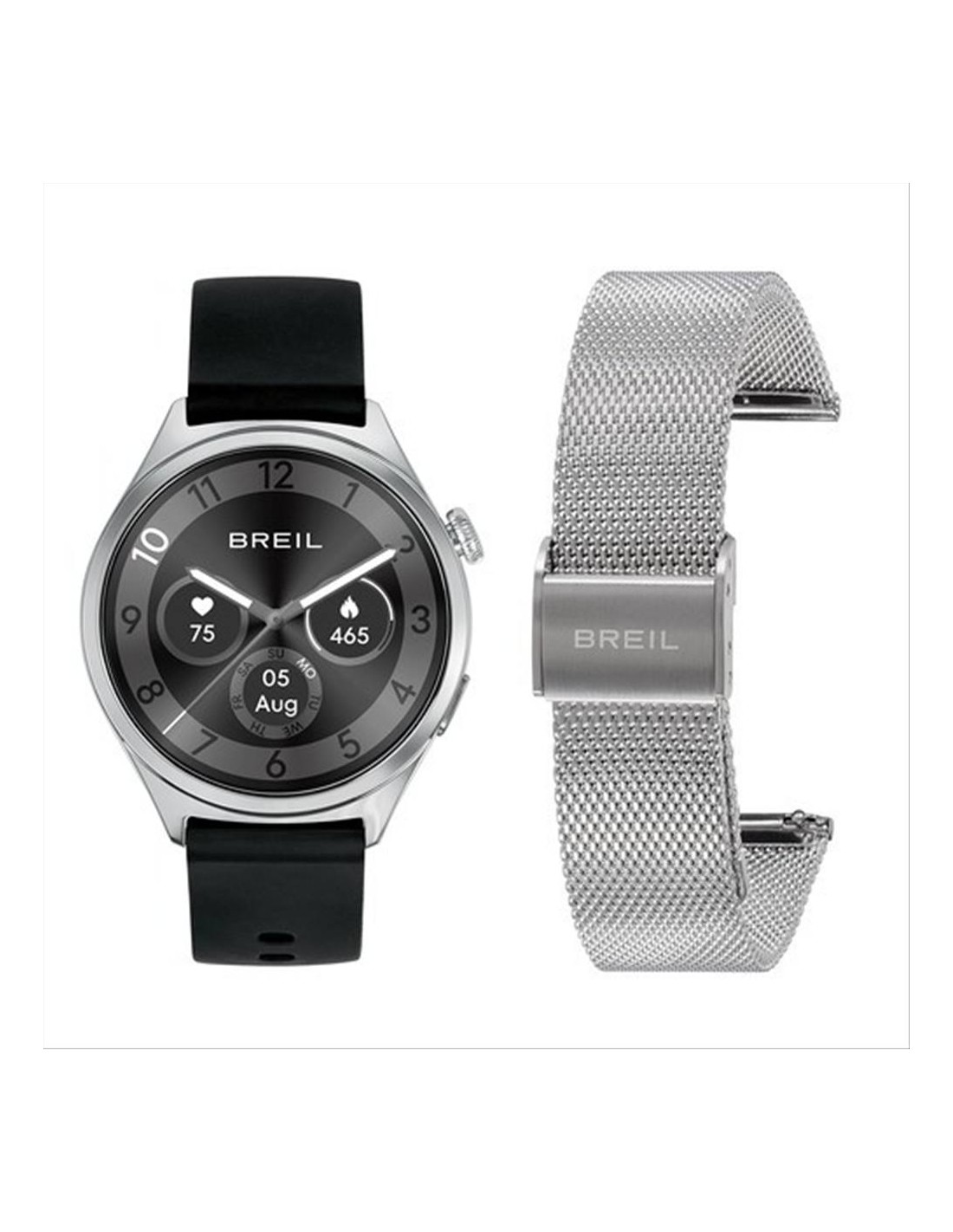 Orologio Breil Smartwatch BC 3.9. Cassa in acciaio di 37 x 44 mm. Display digitale amoled. Vetro minerale. dotato di due cinturini inclusi, facilmente intercambiabili: uno in silicone per un look sportivo e uno in maglia milano La batteria garantisce un’autonomia fino a 7 giorni con una ricarica completa, variabile in base all’utilizzo. Compatibile con iOS e Android tramite l’app B CONNECTED (BT 5.3), BC 3.9 offre un’ampia gamma di funzioni: monitoraggio di diversi sport (come corsa, yoga, ciclismo, calcio), chiamata bluetooth, meteo, frequenza cardiaca, ossigeno nel sangue, monitoraggio del sonno, trova telefono, assistente vocale e molto altro.