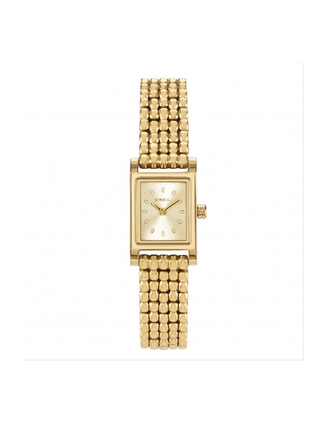 Orologio Breil Demure, solo tempo donna. Cassa squadrata in acciaio pvd dorato dalle dimensioni di 16 mm x 25 mm.