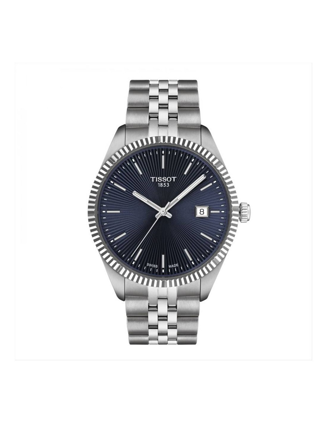 Orologio Tissot Ballade 40mm, solo tempo uomo. Cassa in acciaio 40 mm, quadrante blu con indici e lancette luminescenti silver. Datario alle ore 3. Vetro zaffiro antigraffio, lunetta zigrinata, movimento svizzero al quarzo, cinturino in acciaio silver. Impermeabilità di 10 atm.
