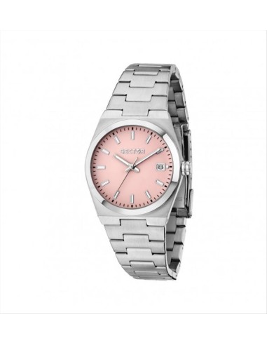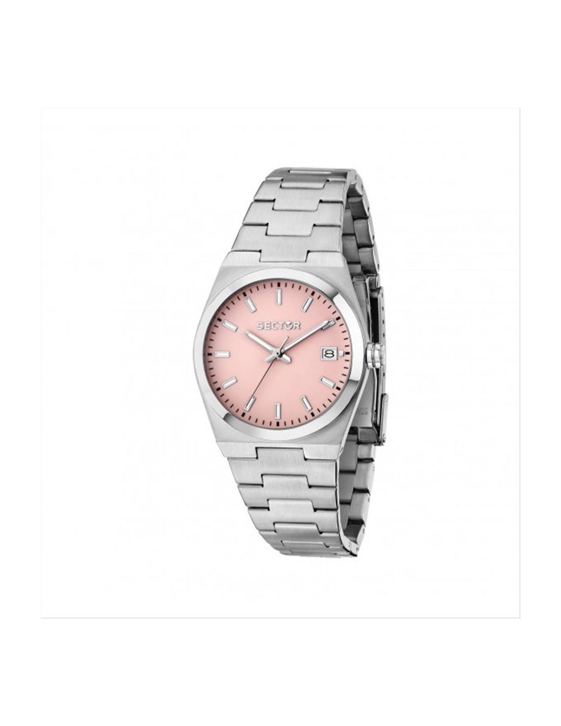 Orologio Sector C300, solo tempo donna. Cassa in acciaio inox dal diametro di 34 mm.Quadrante rosa con indici e lancette luminescenti e datario a ore 3. Vetro minerale e movimento al quarzo. Cinturino in acciaio anallergico. Impermeabilità di 5 atm.
