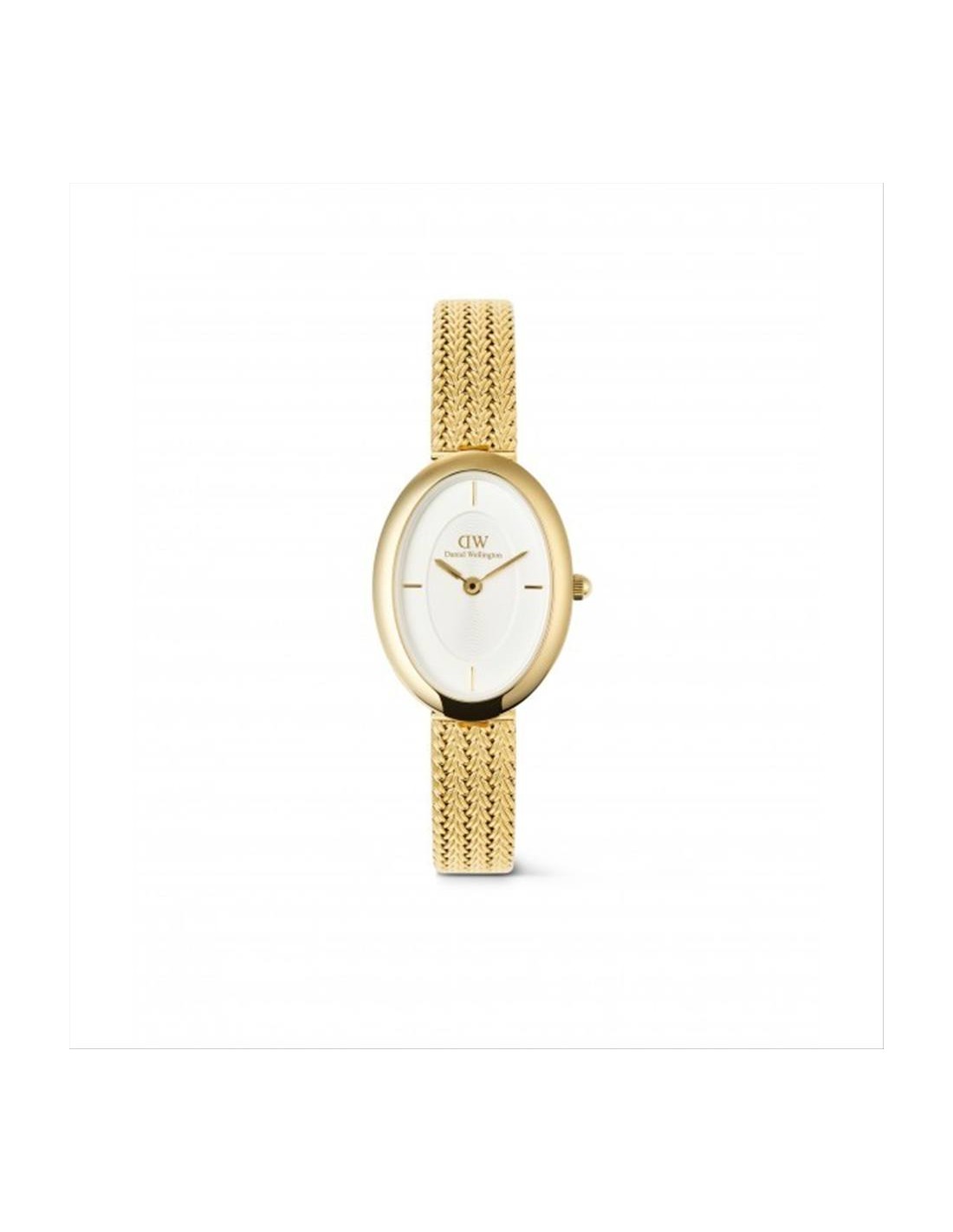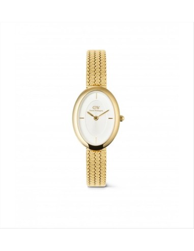 Orologio Daniel Wellington Juliette Braided, solo tempo donna. Cassa ovale in acciaio inossidabile pvd oro giallo di dimensioni 20 x 26 mm. Quadrante biancocon indici e lancette dorate. Movimento al quarzo e vetro minerale. Cinturino in acciaio pvd oro giallo maglia milano con una chiusura regolabile. Impermabilità di 3 atm.