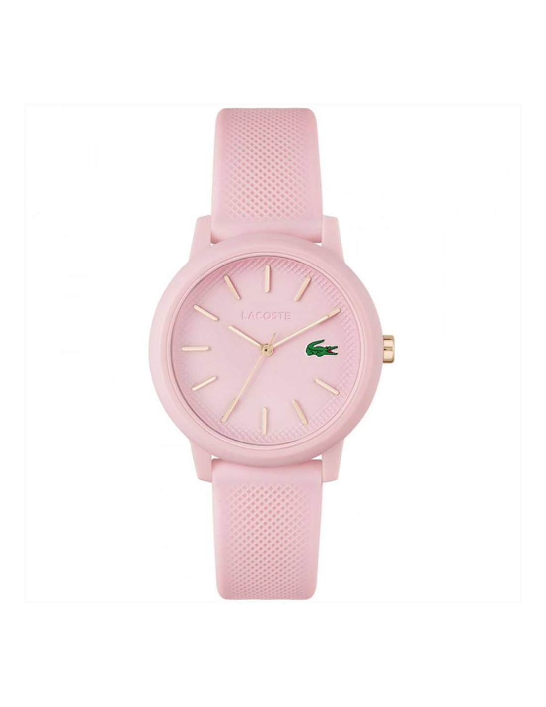 Orologio Lacoste, solo tempo donna. Cassa in resina rosa da 36 mm, quadrante rosa con indici e lancette silver. Movimento al quarzo e vetro minerale. Cinturino in silicone rosa. Impermeabilità di 5 atm.