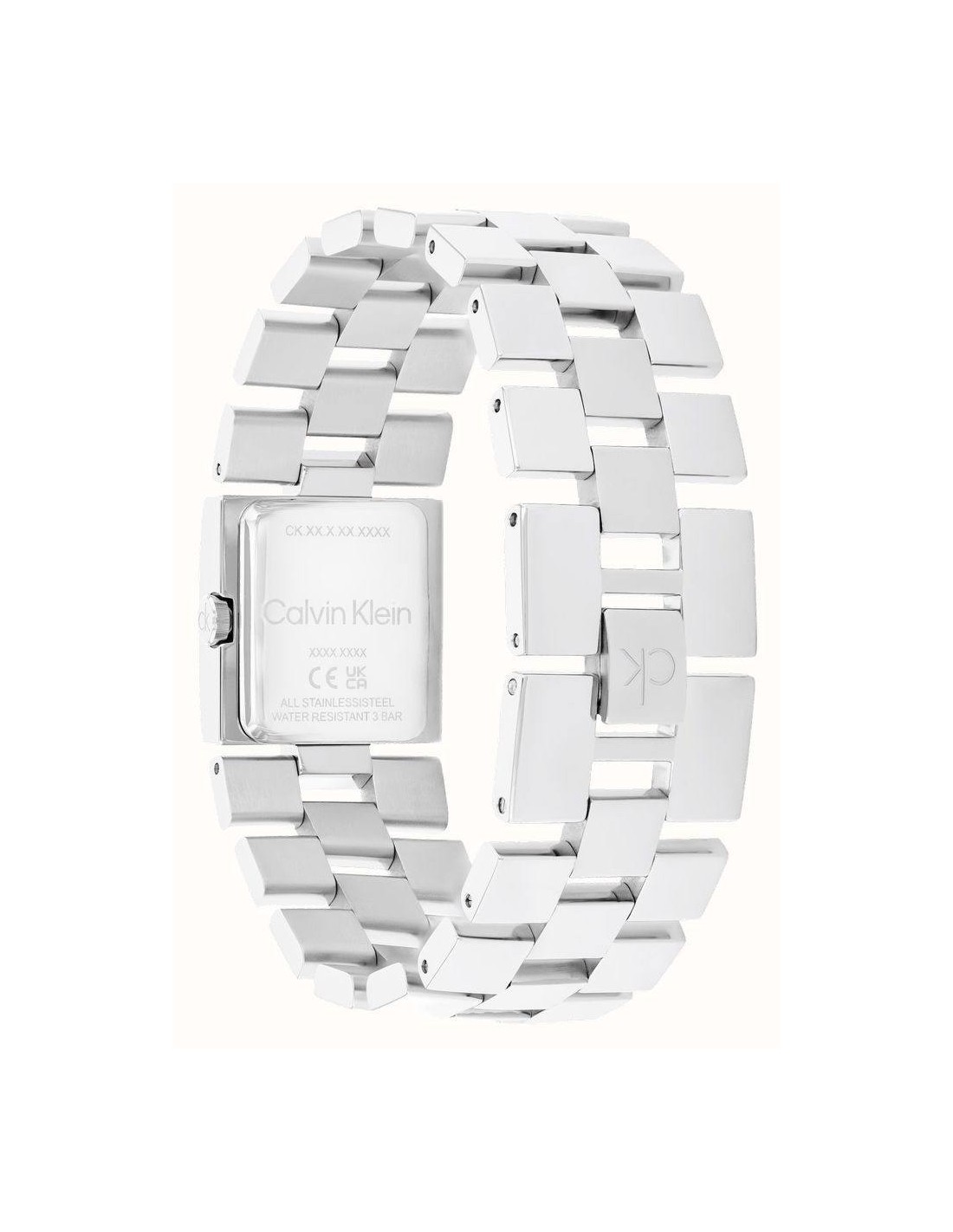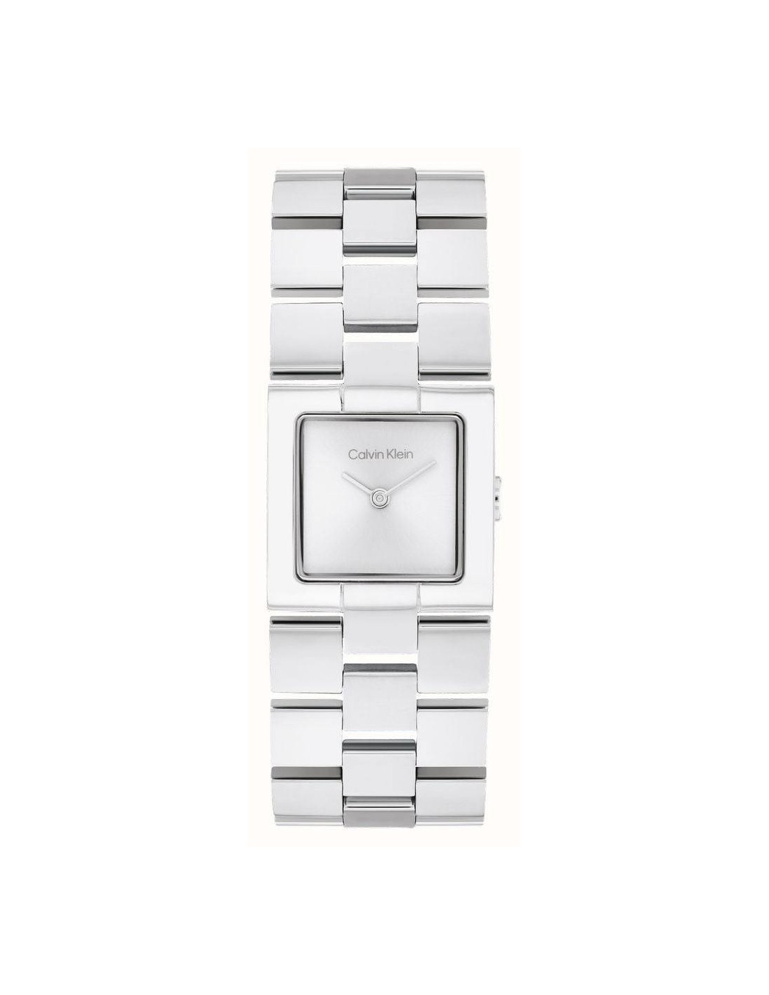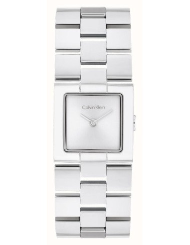 Orologio Calvin Klein Meridian Square, solo tempo donna. Cassa di forma quadrata in acciaio da 22 mm, quadrante silver con lancette silver. Vetro minerale e movimento al quarzo. Cinturino in acciaio silver e impermeabilità di 3 atm.
