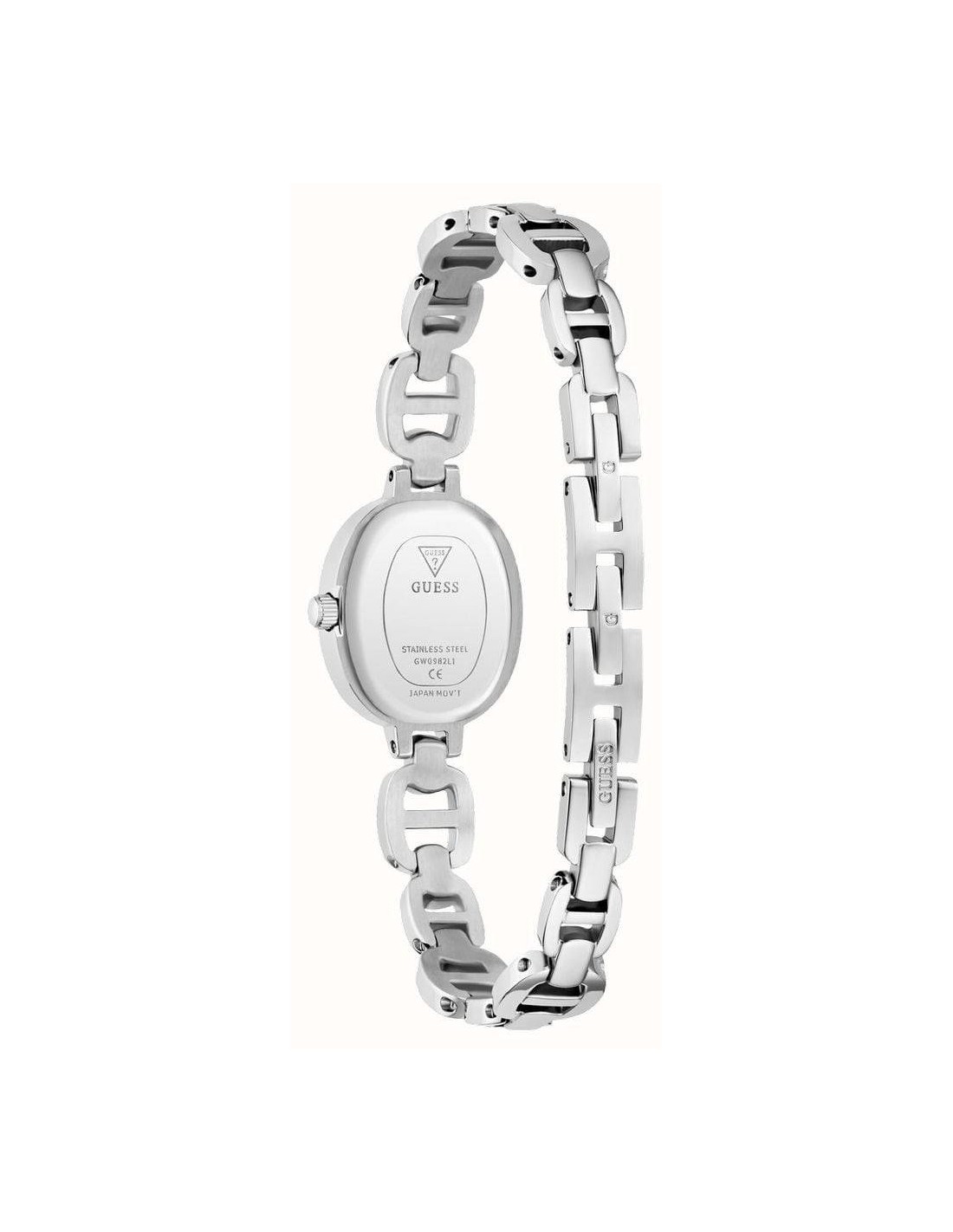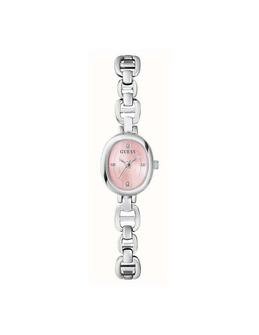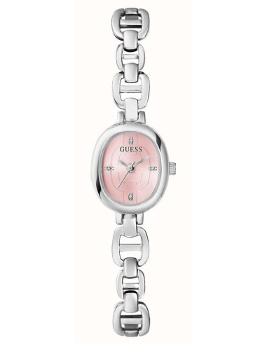 Orologio Guess Vivian, solo tempo donna. Cassa in acciaio di forma ovale da 21 mm. Quadrante rosa con cristalli e lancette silver. Vetro minerale e movimento al quarzo. Cinturino braccialatto in acciaio. Impermeabilità di 3 atm.