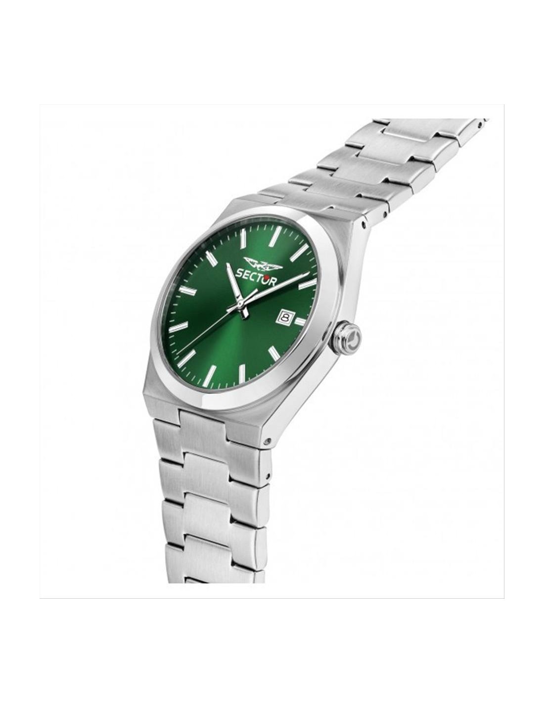 Orologio Sector C300, solo tempo uomo. Cassa in acciaio da 40 mm, quadrante verde con indici e lancette luminescenti, e datario a ore 3. Movimento al quarzo e vetro minerale. Cinturino in acciaio. Impermeabilità di 5 atm.