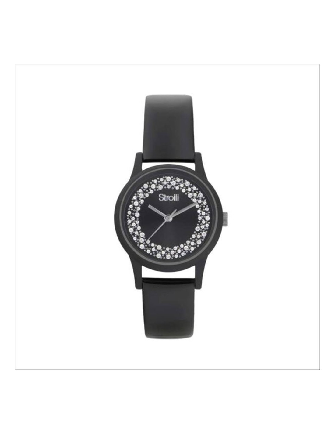 Orologio Stroili Harbin, solo tempo. Cassa in resina nera da 36 mm, quadrante nero con cristali e lancette silver, vetro minerale, e movimento al quarzo. Cinturino in pelle nera lucida. Impermeabilità di 3 atm.