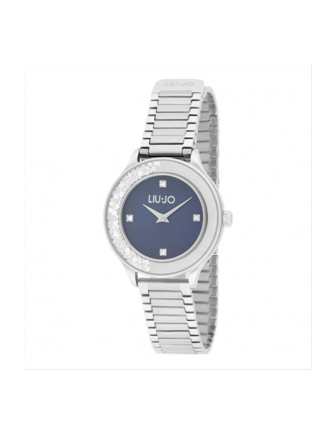 Orologio Liu-Jo Dancing Shine, solo tempo donna. Cassa in acciaio inox dal diametro di 32,5 mm. Lunetta con cristalli bianchi che si muovono liberamente al suo interno. Quadrante blu con lancette silver e zirconi negli indici. Vetro minerale e movimento al quarzo. Cinturino in acciaio silver con chiusura magnetica. Impermeabilità di 3 atm.