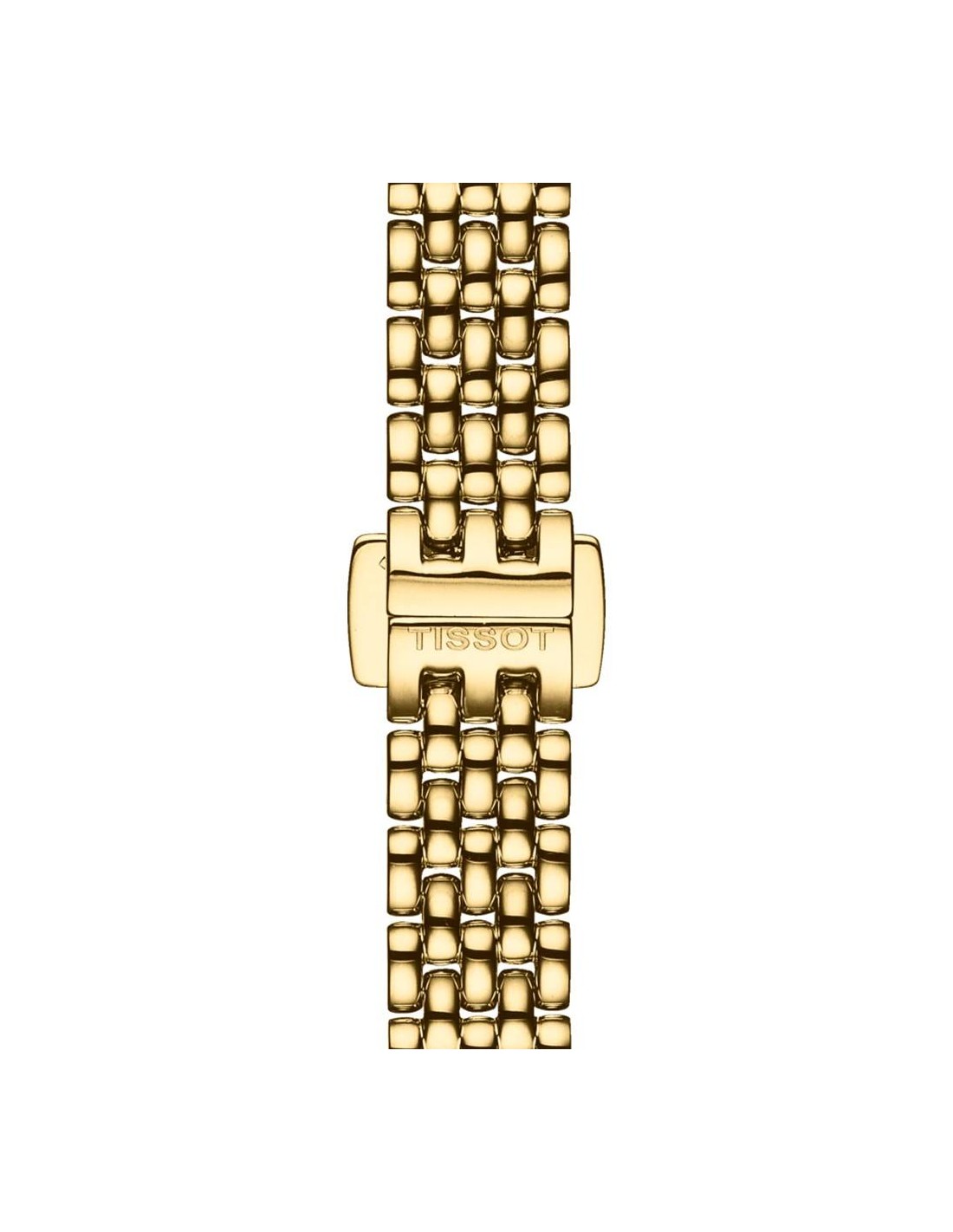 Orologio Tissot Lovely, solo tempo donna. Cassa rotonda in acciaio pvd oro giallo da 19.5 mm, quadrante silver con indici e lancette dorate. Movimento al quarzo svizzero e vetro zaffiro antigraffio e cinturino in acciaio pvd oro giallo. Impermeabilità di 3 atm.