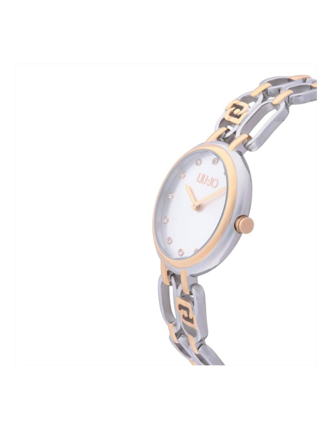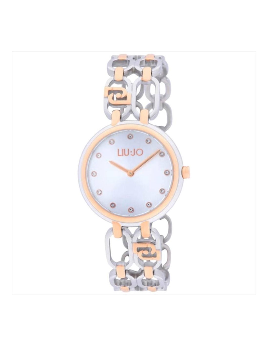 Orologio Liu-Jo Identity Sign, solo tempo donna. Cassa in acciaio inossidabile da 34 mm. Quadrante silver con lancette rosè e impreziosito da cristalli negli indici. Lunetta rosè. Vetro minerale e movimento al quarzo. Cinturino in acciaio bicolore silver e rosè. Impermeabilità di 3 atm.