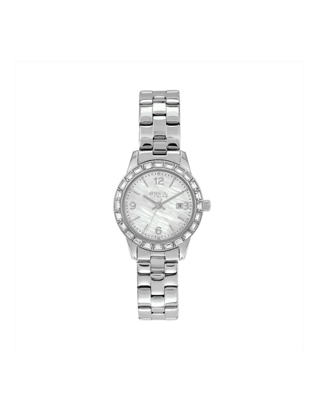 Orologio Breil Tribe Glow And Go, solo tempo donna. Cassa in acciaio da 30 mm, quadrante in madreperla bianca con indici e lancette silver. Datario a ore 3. Lunetta impreziosita da 24 cristalli a taglio baguette. Vetro minerale e movimento al quarzo. Cinturino in acciaio e impermeabilità di 5 atm.