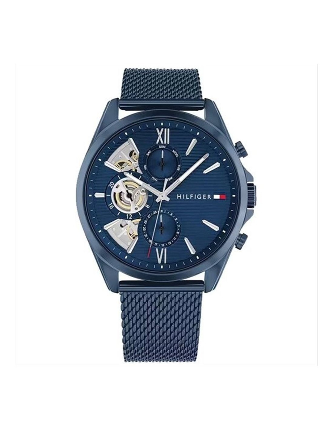 Orologio Tommy Hilfiger Baker, multifunzione uomo. Cassa in acciaio pvd blu da 44 mm, quadrante blu con indici e lancette silver. Vetro minerale. Movimento al quarzo. Cinturino in acciaio maglia milano pvd blu e impermeabilità di 5 atm.